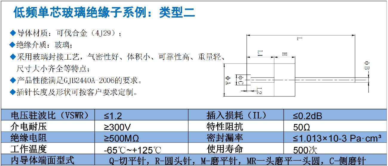 如今,為了更加契合射頻、結(jié)構(gòu)工程師們喜好,以及各行各業(yè)應(yīng)用需求,恒利泰推出適用于各行業(yè)用的“射頻單芯、低頻單芯、低頻聯(lián)排”玻璃絕緣子,在產(chǎn)品類型、內(nèi)導(dǎo)體的針型、尺寸、聯(lián)排間距等方向都擴充了許多。此外,導(dǎo)體外徑、高度及插針的直徑、形狀和長度均可按客戶要求定制。歡迎大家多多選用?。?!