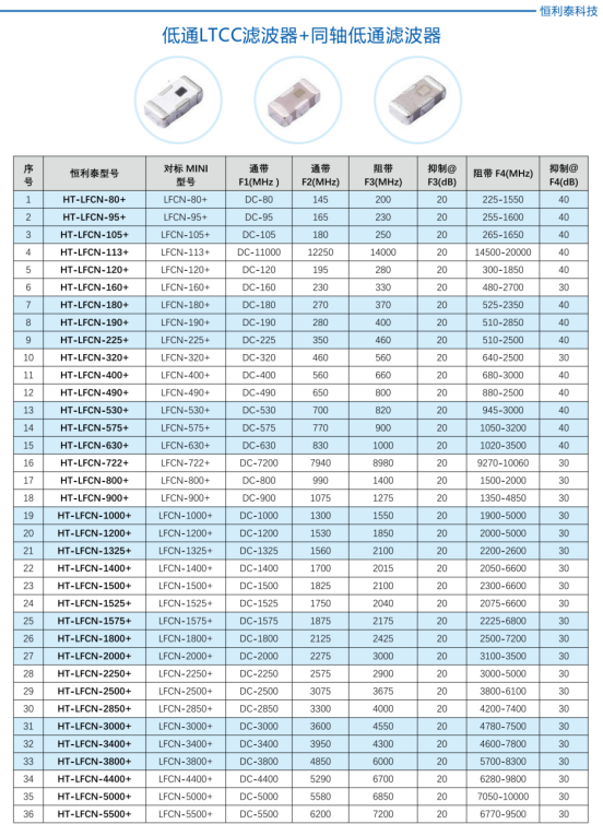 熱門產(chǎn)品推薦:HT-LFCN-800+(對標(biāo)mini的LFCN-800+)、HT-LFCN-490+(對標(biāo)LFCN-490+)、HT-LFCN-400+(對標(biāo)LFCN-400+)、HT-LFCN-2500+(對標(biāo)LFCN-2500+)、HT-LFCN-2250+(對標(biāo)LFCN-2250+)、HT-LFCN-160+(對標(biāo)LFCN-160+)、HT-LFCN-1000+(對標(biāo)LFCN-1000+)、HT-LFCN-1800+(對標(biāo)LFCN-1800+)、HT-LFCN-6000+(對標(biāo)LFCN-6000+)、HT-LFCN-80+(對標(biāo)LFCN-80+)