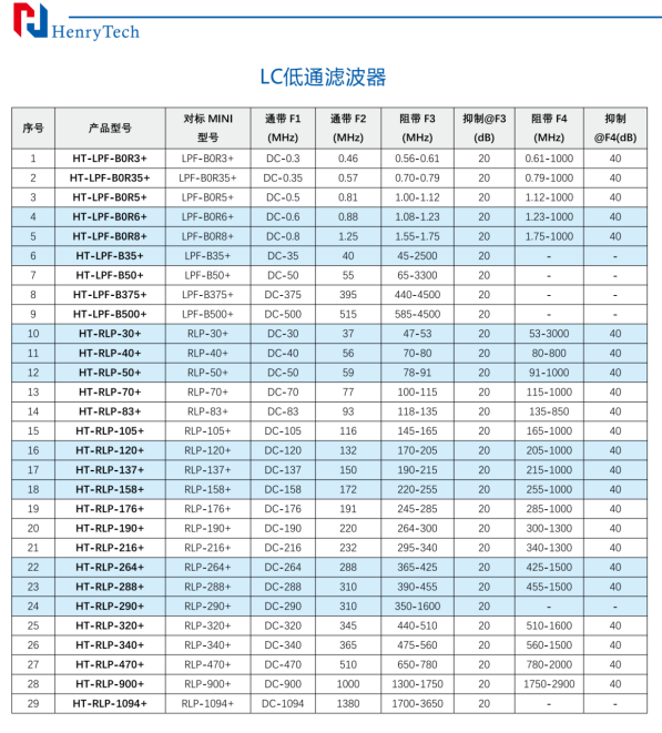 關(guān)注:成都恒利泰科技有限公司(HenryTech)專業(yè)研發(fā)、生產(chǎn)“原位替代Mini-Circuits、MACOM、PLUS、線藝的LTCC/LC低通濾波器”。此外,我司還涉及“原位替代上述品牌的LTCC/LC高通、帶通濾波器,巴倫變壓器,表貼式功分器”,可以定制化“大功率微帶功分器”,其功分路數(shù)、功率、駐波、插損、尺寸等均可按客戶要求定制。