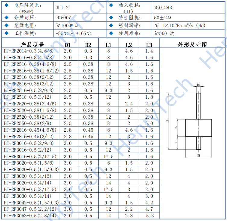 關(guān)注:成都恒利泰科技有限公司(HenryTech)專業(yè)研發(fā)、生產(chǎn)“低頻單芯玻璃絕緣子、射頻單芯玻璃絕緣子、射頻聯(lián)排玻璃絕緣子”,導(dǎo)體外徑、高度及插針的直徑、形狀和長(zhǎng)度均可按客戶要求定制。