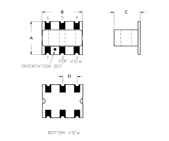 頻率范圍3-200MHz,SMT,阻抗50Ω,阻抗比1:1,巴倫變壓器 |