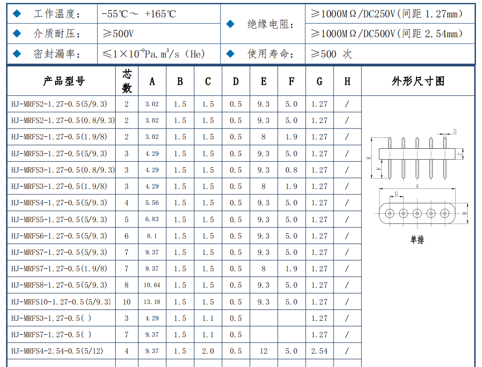 產(chǎn)品型號(hào):HJ-MRFS2-1.27-0.5