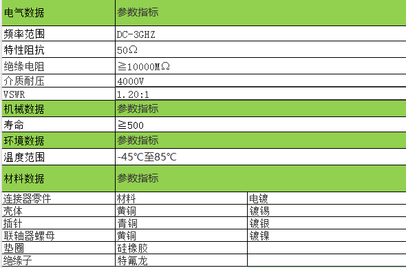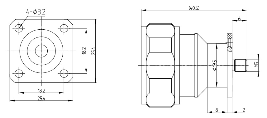 替代型號:L29/ Din / 7/16公頭法蘭安裝連接器 DC-3GHz 阻抗:50Ω 駐波比≤1.2