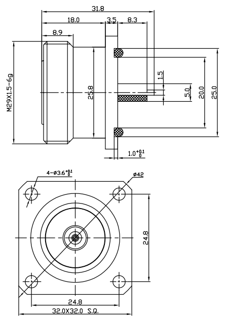 替代型號(hào):L29/ Din / 7/16母頭法蘭安裝射頻同軸連接器 DC-3GHz 阻抗:50Ω 駐波比≤1.15