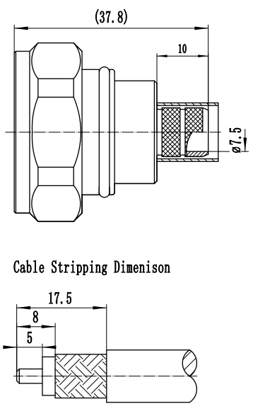 替代型號:Din/L29 公頭射頻連接器接LMR400線纜 DC-7.5GHz 阻抗:50Ω 駐波比≤1.25