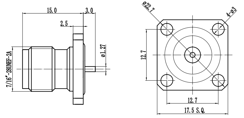 替代型號:TNC母頭四孔法蘭安裝射頻連接器 DC-11GHz 阻抗:50Ω