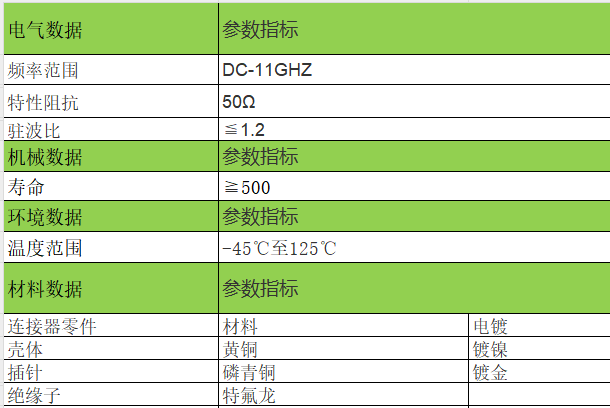 接口配合尺寸和技術(shù)特點(diǎn)符合MIL-C-39012、IEC60169-17和CECC22200標(biāo)準(zhǔn)。