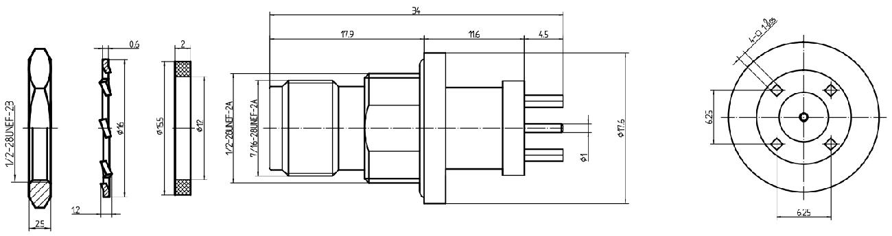替代型號(hào):TNC母頭穿墻PCB安裝連接器 DC-6GHz 阻抗:50Ω