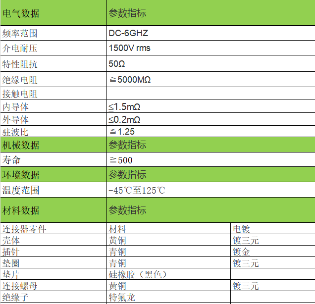 接口配合尺寸和技術(shù)特點(diǎn)符合MIL-C-39012、IEC60169-17和CECC22200標(biāo)準(zhǔn)。