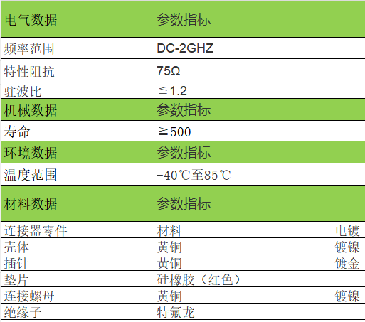 產品描述:TNC 75歐姆公頭射頻連接器 DC-2GHz 阻抗:75Ω TNC型是螺接式中功率同軸連接器,具有抗振性能好、可靠性高、工作頻率寬等優(yōu)點,特別用于移動、航空航天、雷達及各種無線電儀器的射頻電纜連接。 接口配合尺寸和技術特點符合MIL-C-39012、IEC60169-17和CECC22200標準。