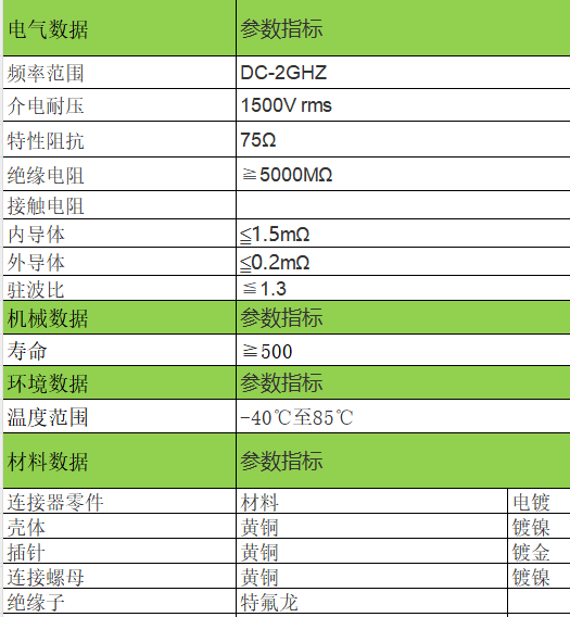 接口配合尺寸和技術特點符合MIL-C-39012、IEC60169-17和CECC22200標準。