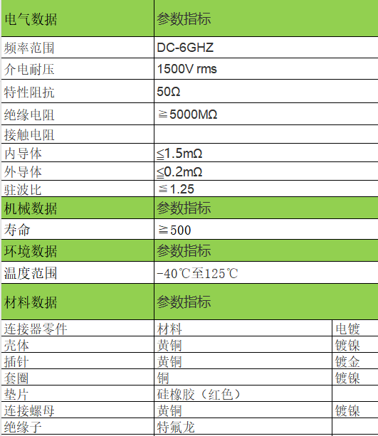 接口配合尺寸和技術(shù)特點(diǎn)符合MIL-C-39012、IEC60169-17和CECC22200標(biāo)準(zhǔn)。