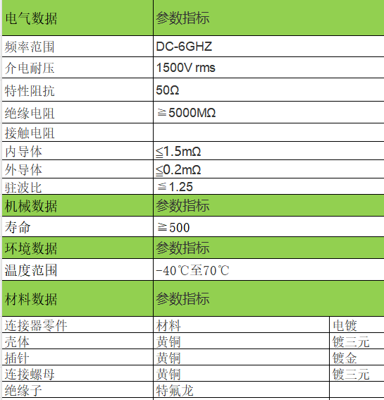 接口配合尺寸和技術(shù)特點(diǎn)符合MIL-C-39012、IEC60169-17和CECC22200標(biāo)準(zhǔn)。