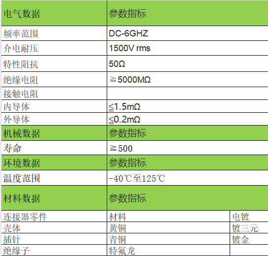 接口配合尺寸和技術(shù)特點符合MIL-C-39012、IEC60169-17和CECC22200標(biāo)準(zhǔn)