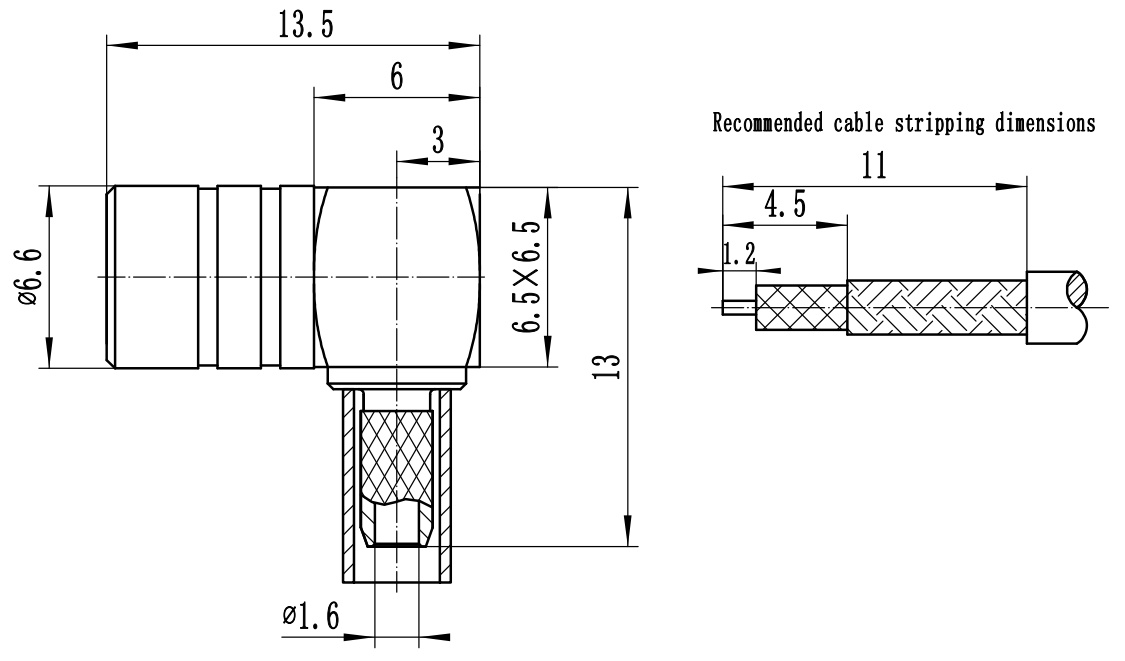 替代型號:SMB母頭彎式射頻連接器接RG316電纜 DC-4GHz 阻抗:50Ω