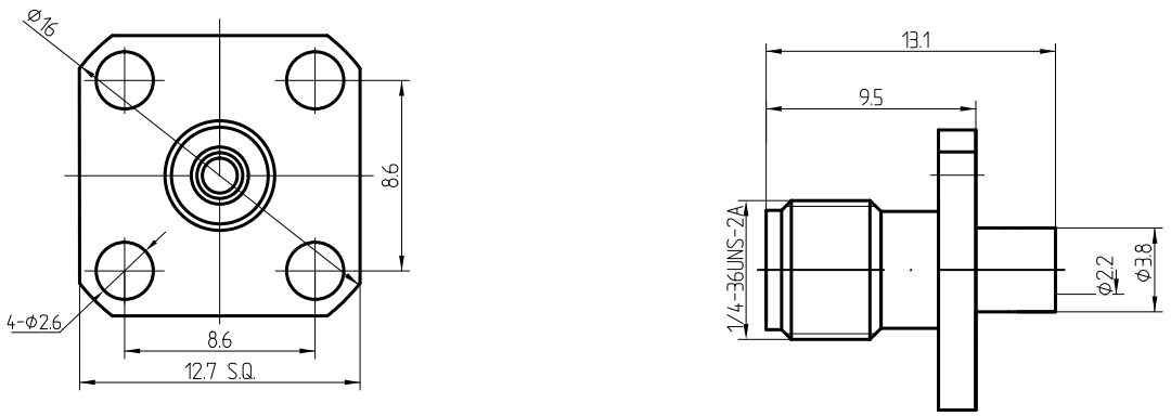 替代型號:ISMA母頭法蘭安裝接086/RG405線纜射頻連接器 DC-18GHz 阻抗:50Ω