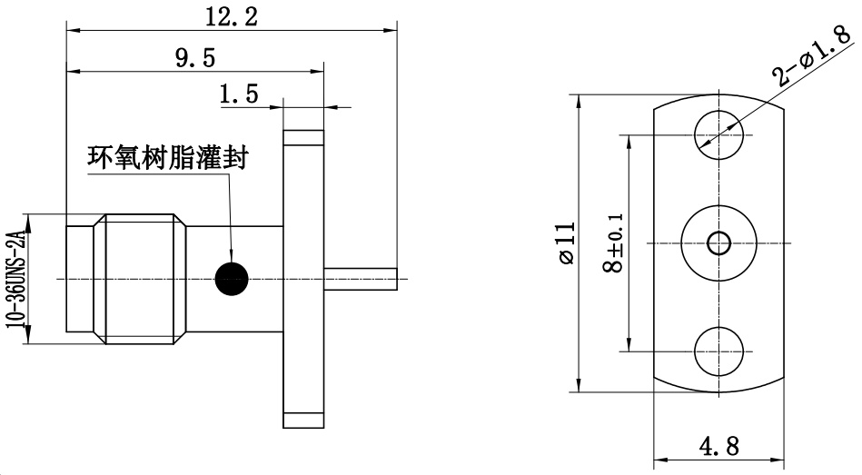 替代型號(hào):SSMA母頭法蘭安裝射頻連接器 DC-18GHz 阻抗:50Ω