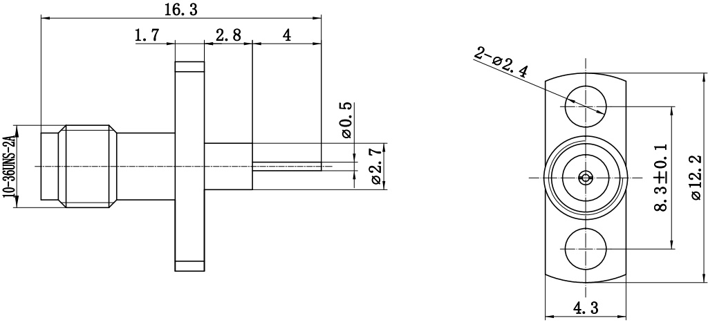替代型號:SSMA母頭法蘭安裝射頻連接器 DC-18GHz 阻抗:50Ω