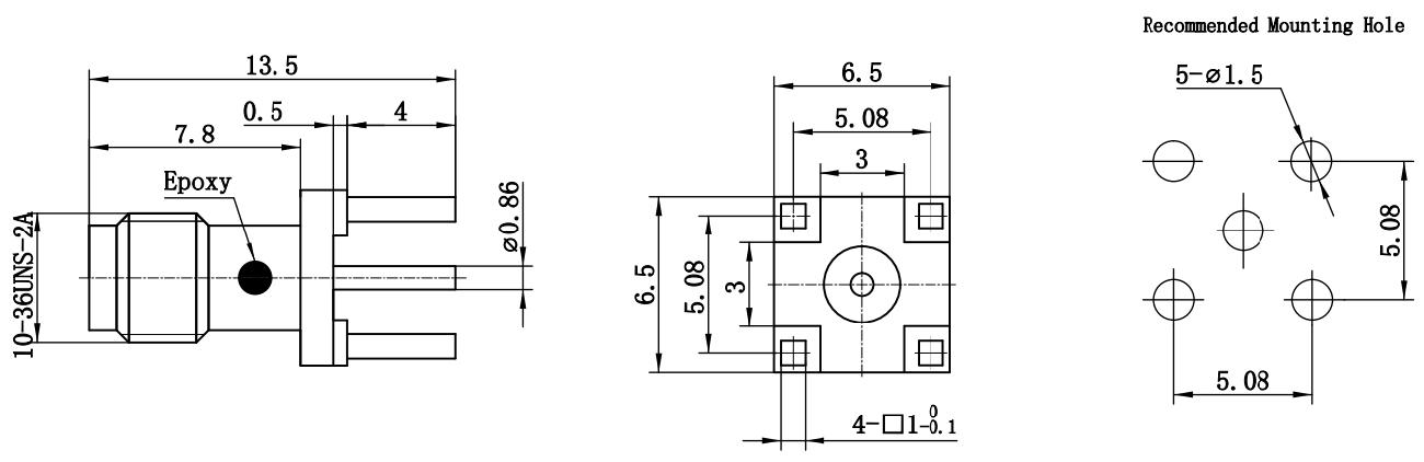 替代型號:SSMA母頭PCB板安裝射頻同軸連接器 DC-18GHz 阻抗:50Ω