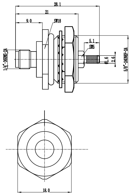 替代型號(hào):反極SMA母頭穿墻安裝接RG316電纜射頻同軸連接器 DC-6GHz 阻抗:50Ω