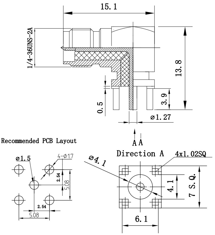 產品描述:反極SMA母頭彎式印制板安裝射頻同軸連接器 DC-6GHz 阻抗:50Ω