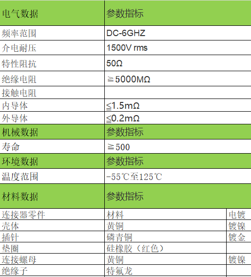 接口配合尺寸和技術特點符合MIL-C-39012、IEC60169-17和CECC22200標準。