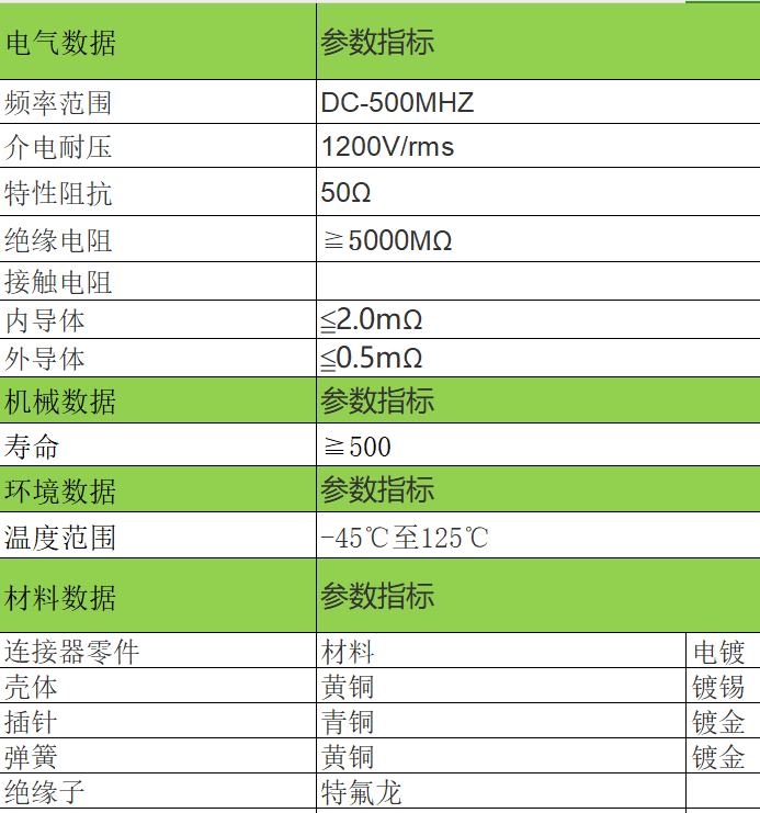 替代型號(hào):TRB公頭轉(zhuǎn)TRB公頭射頻轉(zhuǎn)接器 DC-500MHz 阻抗:50Ω